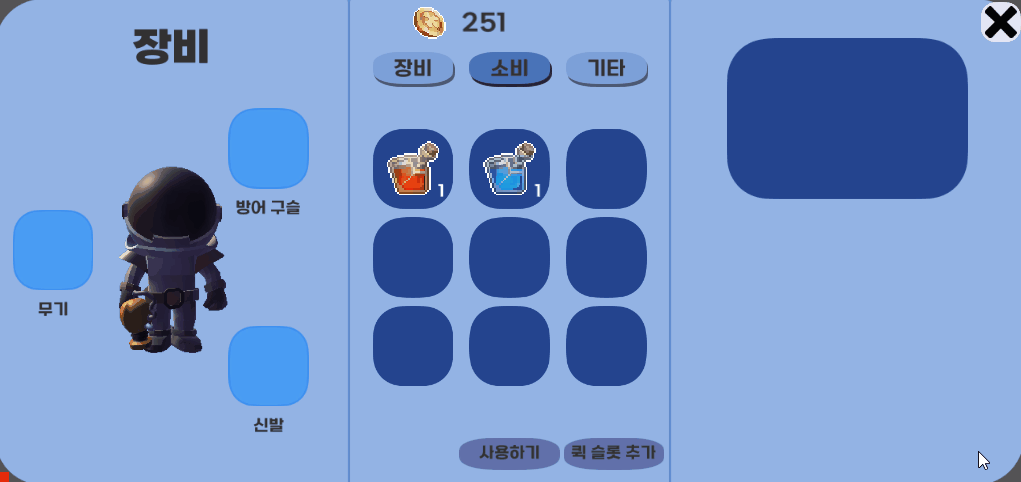 그래도 만드는김에 하는게 좋을것같아서 로직도 다시짜고 장비/소비/기타 탭으로 나누었다.