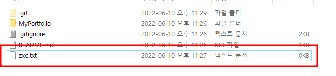 방금 생성한 zxc.txt 라는 파일이 Untracked 되고있는것을 볼 수 있다.