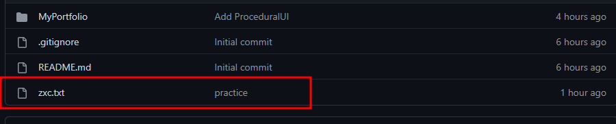 zxc.txt라는 파일이 practice라는 커밋명이 적혀서 들어와 있는것을 볼 수 있다.