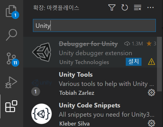 이 중에 Debugger for Unity는 업데이트의 마지막이 몇년전이고 경고 표시가 있듯이 유지관리가 되지 않는다고 나온다.