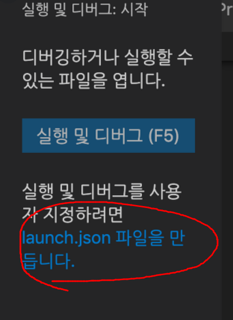 그리고 동그라미친 launch.json파일을 만듭니다를 누르면 잘 된다.