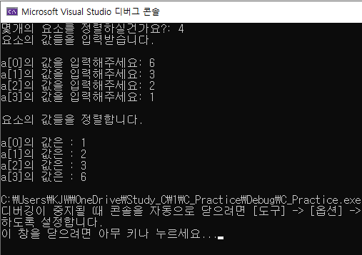 printf("몇개의 요소를 정렬하실건가요?: ");