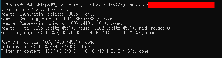 5. 이제 내가 로컬저장소로 쓸 경로로 들어가서 파일을 내려받아야 한다.