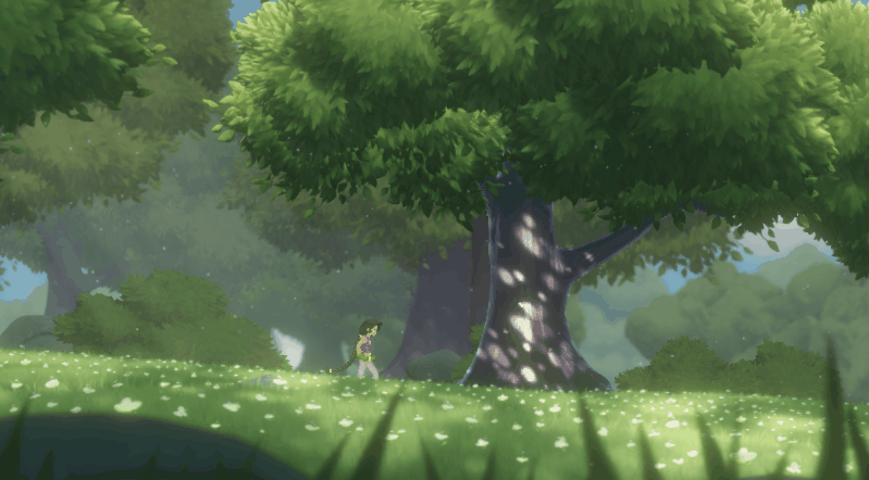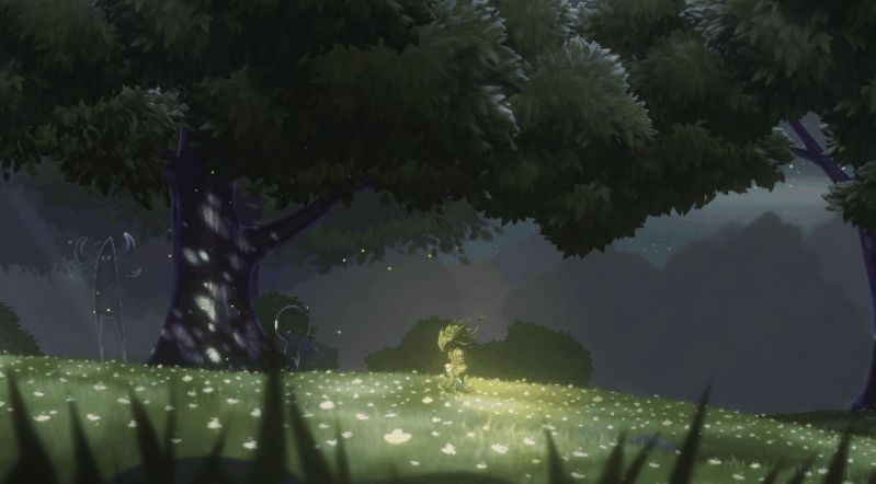 가까이 보이는 풀부터 그림자, 멀리보이는 배경, 흔들리는 나뭇잎과 반짝이는 벌레들까지 정말 예쁘다.