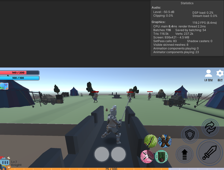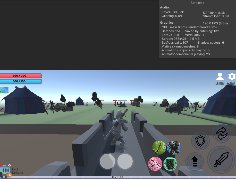 움직이지 않을 물체들을 배칭 스태틱으로 두어 스태틱배칭을 사용했다.