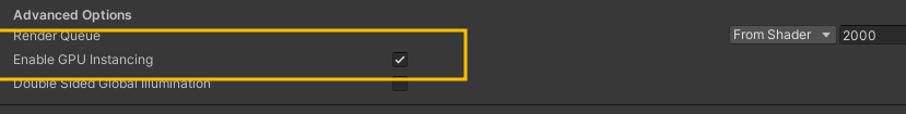 나는 같은 매터리얼을 쓰는 오브젝트들이 많아서 겹치면 스태틱 배칭으로 처리가 될테니 스태틱 배칭과 GPU인스턴싱에 체크 해두었다.