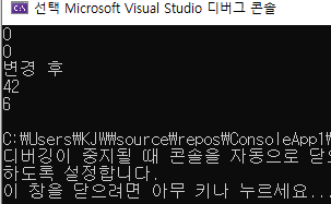 Console.WriteLine($"변경후\nA = {A}\n샐러리 ={mySalary.mySalary}");