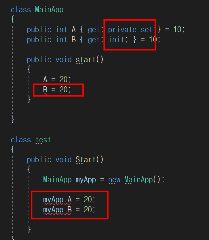 그리고 C# 9.0부터는 프로퍼티의 set부분에 init 키워드를 쓸 수 있다.