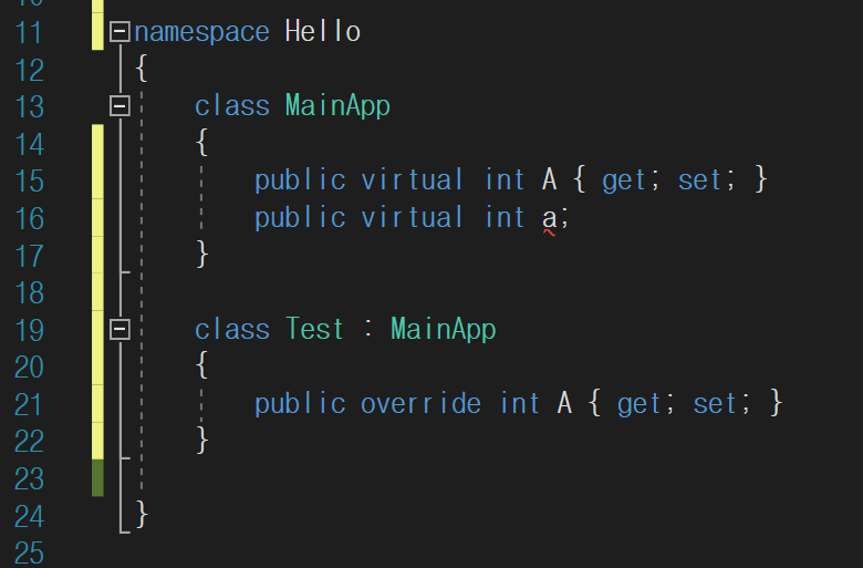 프로퍼티는 virtual 한정자를 이용해 상속받은 클래스에서 재정의가 가능하다.